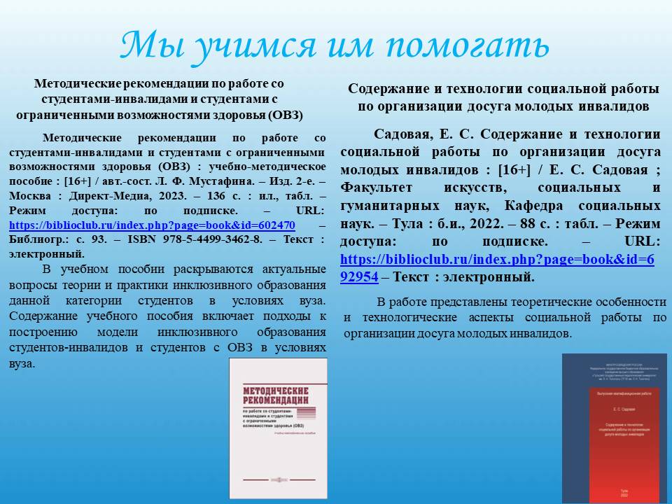 Предлагаем вашему вниманию презентацию с учебными пособиями, законодательным регулированием, статями.