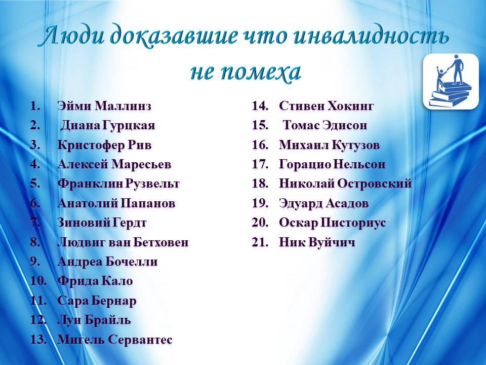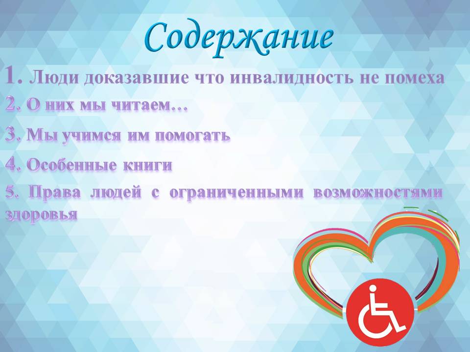 Мы предлагаем вам книжную выставку, посвященную Международному дню инвалидов.