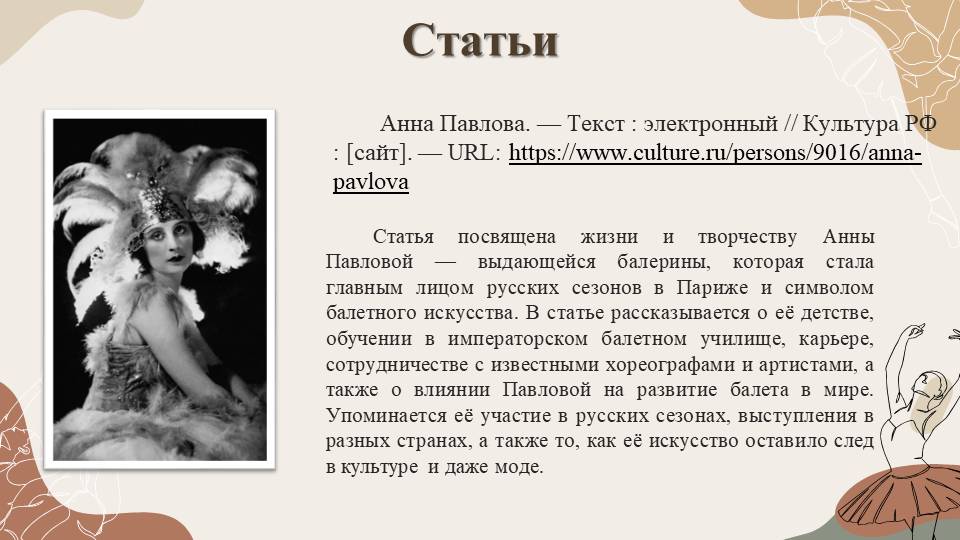 Мы предлагаем вам книжную выставку, посвященную одной из величайших балерин 20 века.