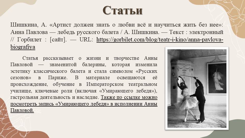Уважаемые читатели! Мы часто слышим выражение «грациозна, как балерина». Или видим знаменитый десерт «Павлова». Или вспоминаем эталонный образ Умирающего лебедя. Все эти вещи ведут к одной личности - Анне Павловой. 12 февраля 2026 года исполняется 145 лет со дня рождения Анны Павловны Павловой - русской артистки балета.