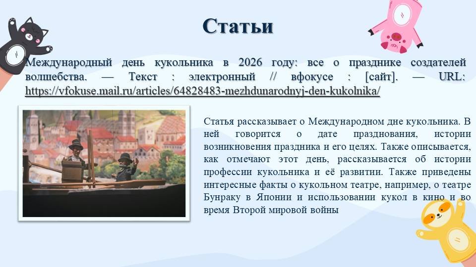 #Книжная выставка : Международный день театра кукол