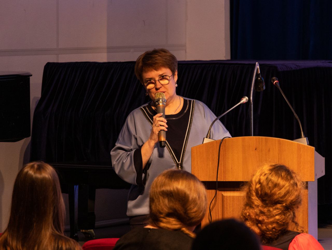 Заседание открылось творческим приветствием «О России петь...» - выступлением женского академического ансамбля института под руководством доцента кафедры ДНиЭМИ Л.А. Семеренко.