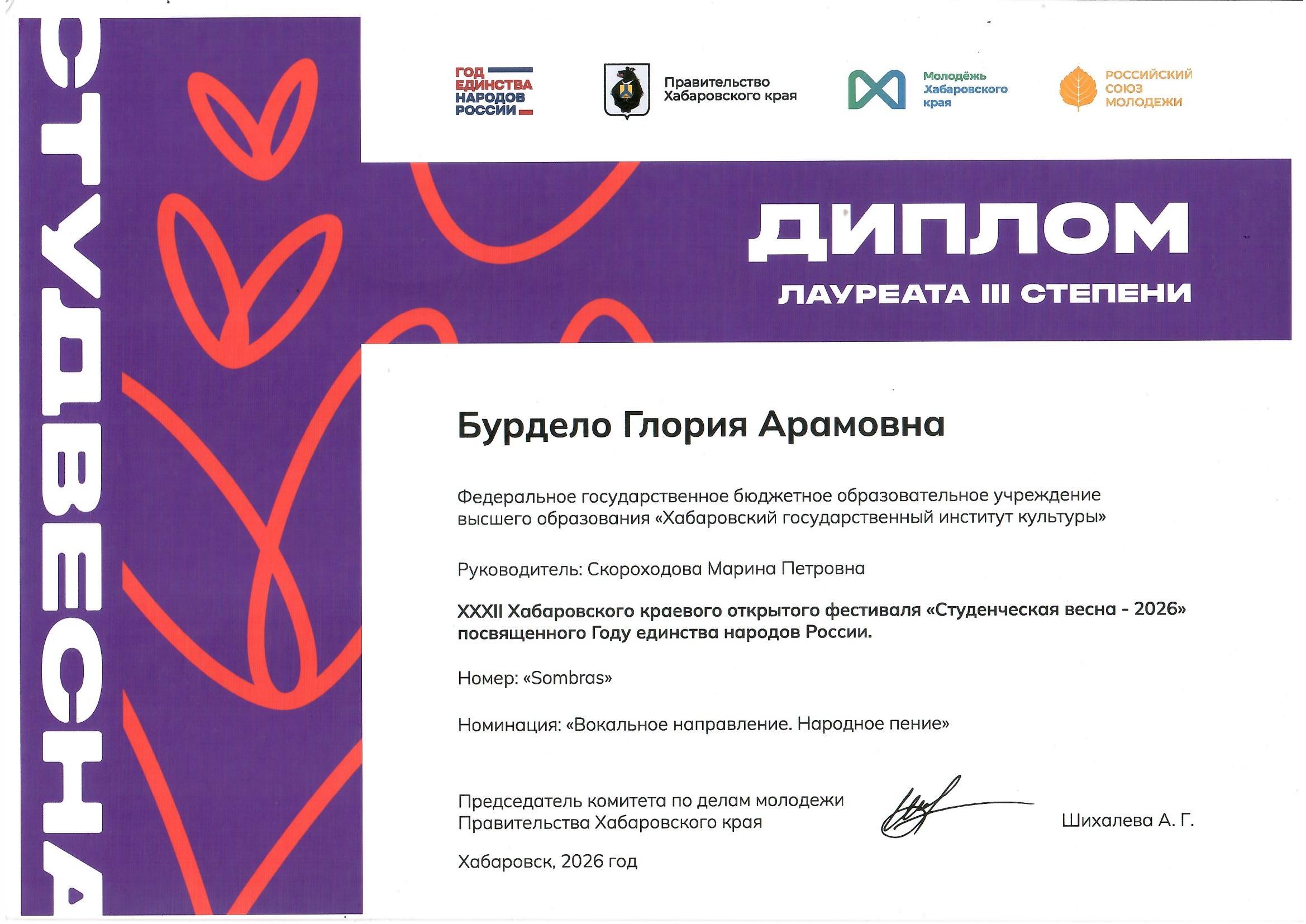 ✨ Бурдело Глория Арамовна, студентка 2 курса — лауреат III степени