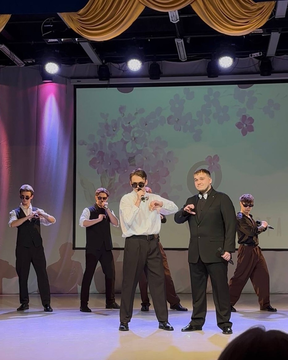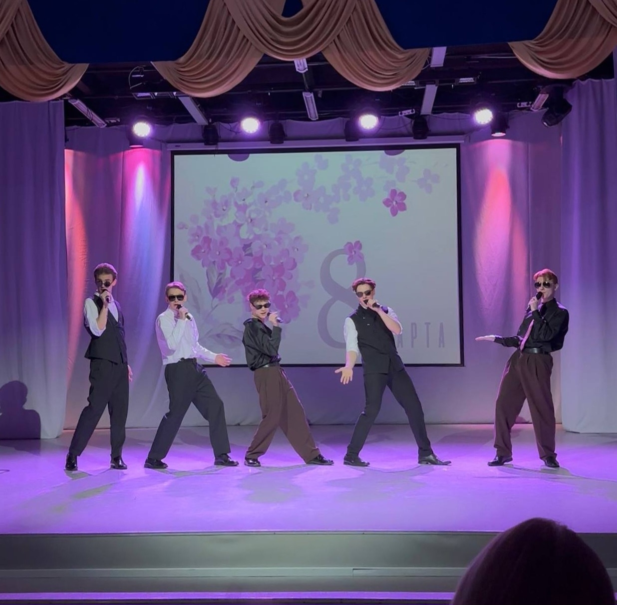 Музыкальная палитра вечера была разнообразной — в зале звучали и классический вальс Шопена, и лирические гитарные соло, и зажигательные хиты в исполнении мужских коллективов. Романтическую атмосферу дополнили интерактивные моменты, когда мужчины спускались в зал, чтобы подарить цветы и пригласить дам на танец.
