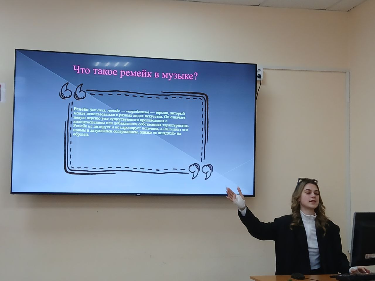 5 декабря студенты группы 222 пробовали силы в проведении информационно-просветительского лектория на животрепещущую тему "Ремейк в искусстве"!