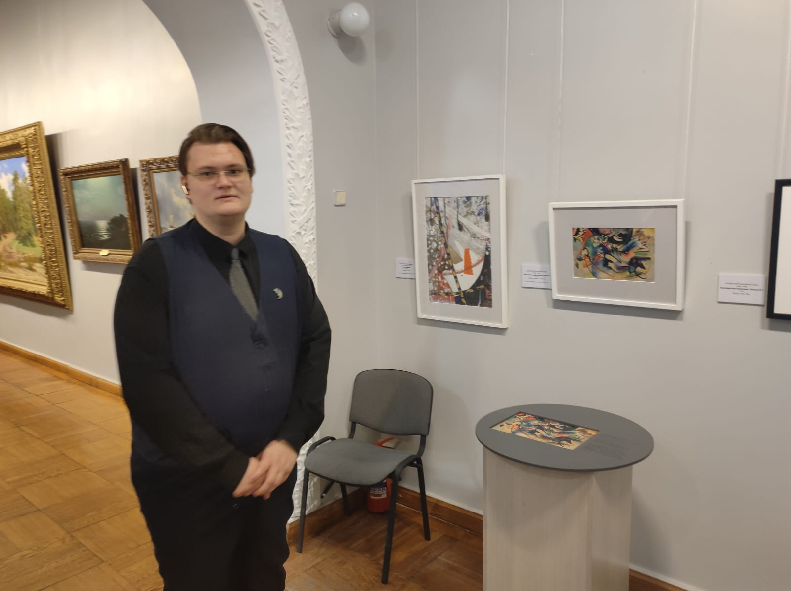 На кураторской экскурсии директор Вятского художественного музея имени В.М. и А.М. Васнецовых А.В. Шакина рассказала о концепции композиционного решения выставки. Начало выставки дает представление об эстетических предпосылках авангарда в художественной парадигме импрессионизма и постимпрессионизма. Далее следуют примеры работ художников из объединений «Ослиный хвост», «Бубновый валет», «Голубая роза». В следующем зале авангардные работы отражают поиски неклассических форм, смыслов, идей как отзыв на новую картину миру. Особый акцент был сделан на 4-х произведениях В. Кандинского. Студенты узнали о необычной находке работы В. Кандинского лектором А.В. Шакиной. Большое место уделено графическим произведениям авангардав, им посвящен отдельный зал.